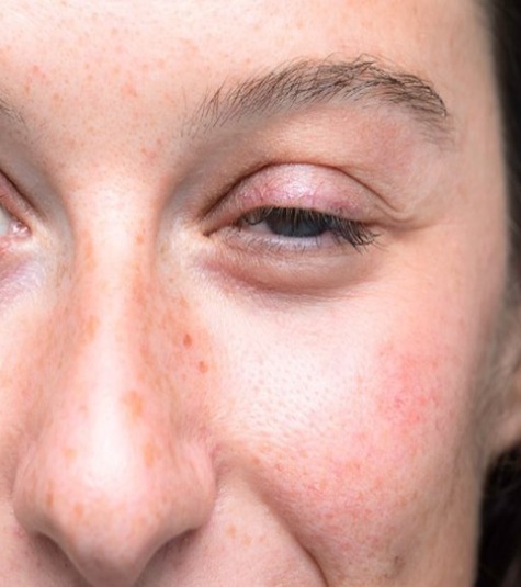 Excess upper eyelid skin that occurs with ageing and is known as dermatochalasis.